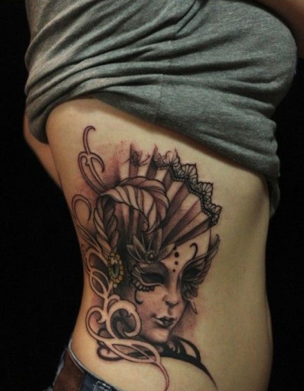 侧肋威尼斯性感女郎纹身图案