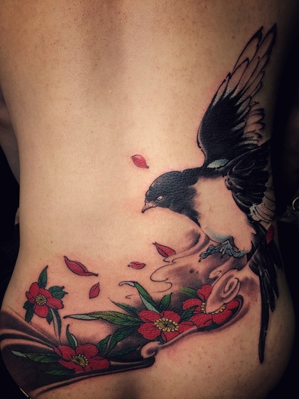 分享一款腰部时尚性感的蝶恋花纹身图案_腰部纹身图案大全_纹身图吧