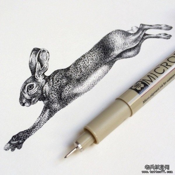 欧美兔子点刺纹身图案手稿