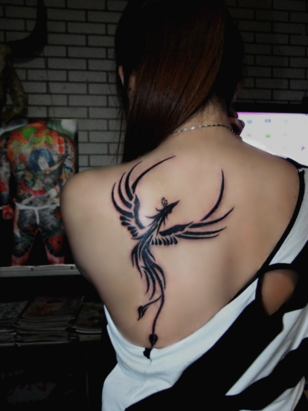 美女后背简单唯美的凤凰图腾纹身图案