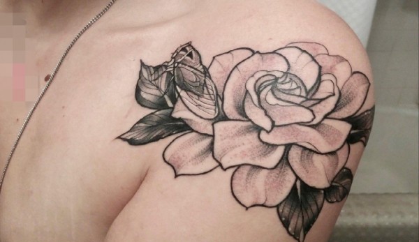 欧美玫瑰纹身 男生手臂上花朵纹身图片