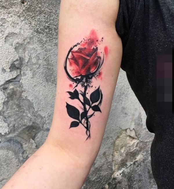 欧美玫瑰纹身 男生手臂上花朵纹身图片