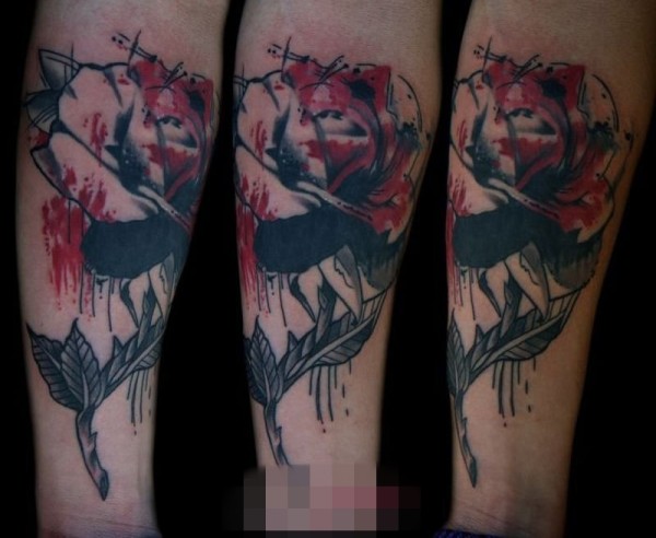 欧美玫瑰纹身 男生手臂上花朵纹身图片
