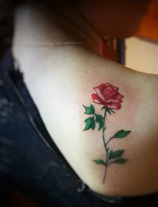 时尚女孩后背一只红玫瑰纹身图案