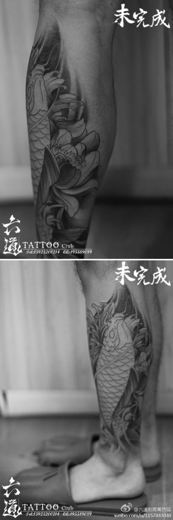 传统鲤鱼花小腿纹身_腿部纹身图案大全_纹身图吧