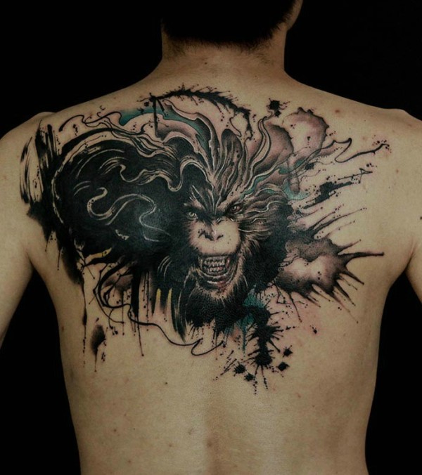 后背彩绘齐天大圣孙悟空头像纹身图案
