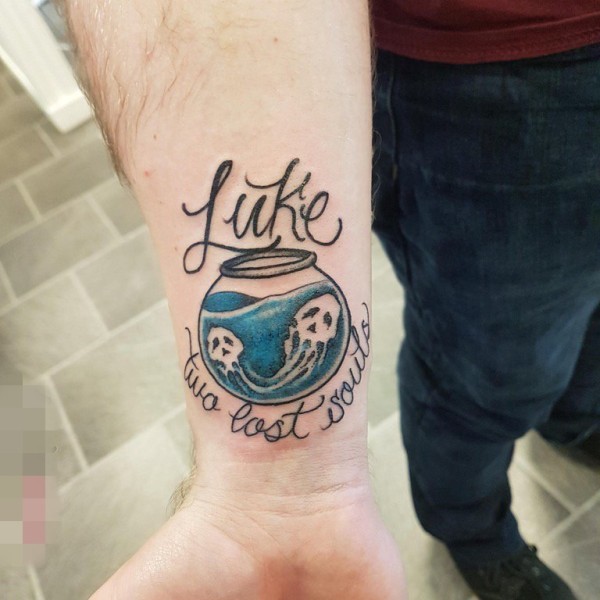 彩绘技巧几何元素抽象线条英文单词和瓶子纹身图片