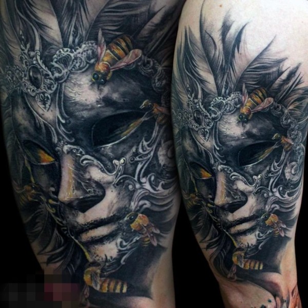 能面万媚纹身手稿_52张日式能剧面具纹身手稿图案素材欣赏