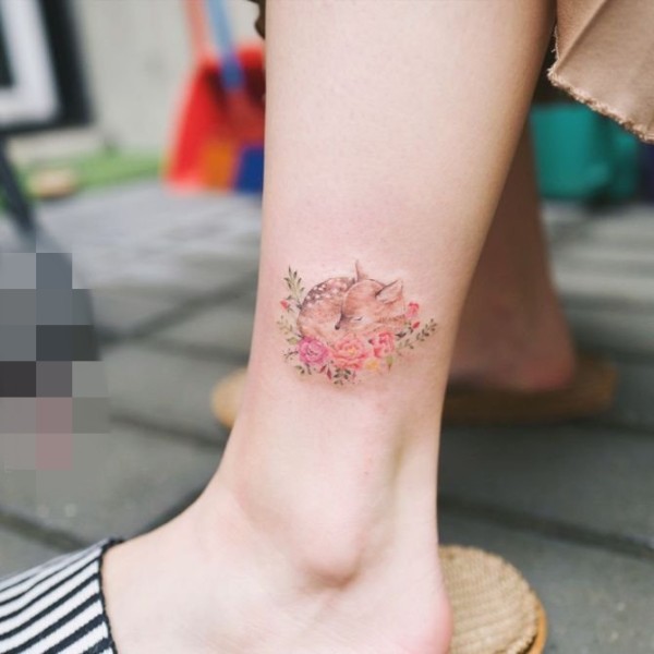 可爱小巧的彩绘技巧抽象线条小动物纹身图案