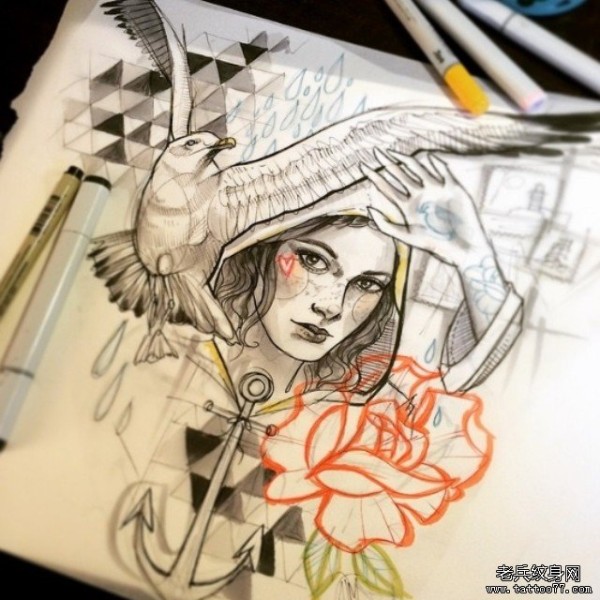 双鱼座纹身手稿_45张十二星座之双鱼手稿纹身图案