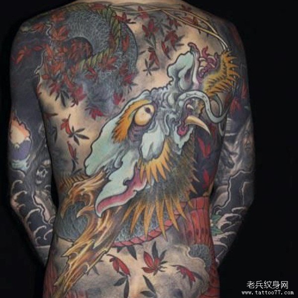 满背龙传统彩色纹身图案