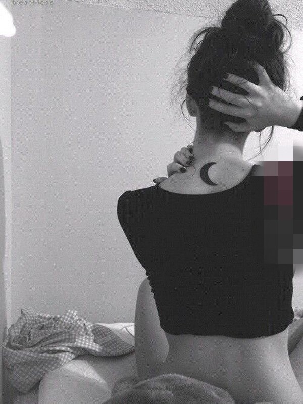 女生颈后黑白文艺小清新纹身图案
