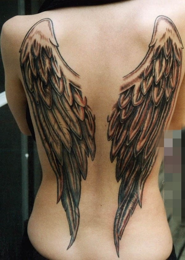 女生后腰纹身黑白灰风格抽象线条纹身图案