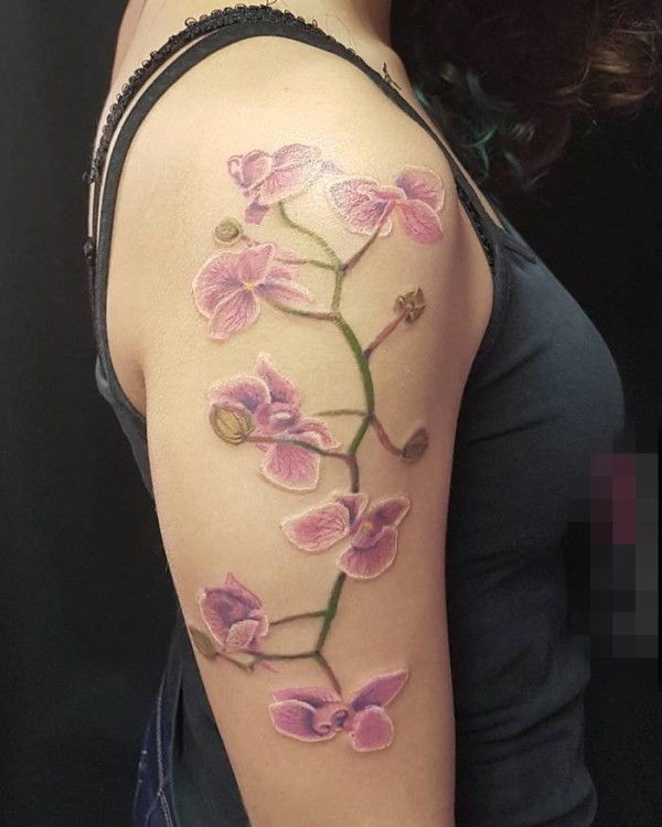 后肩唯美花藤英文图案图片_植物纹身图案大全_纹身图吧