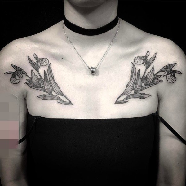 后肩唯美花藤英文图案图片_植物纹身图案大全_纹身图吧