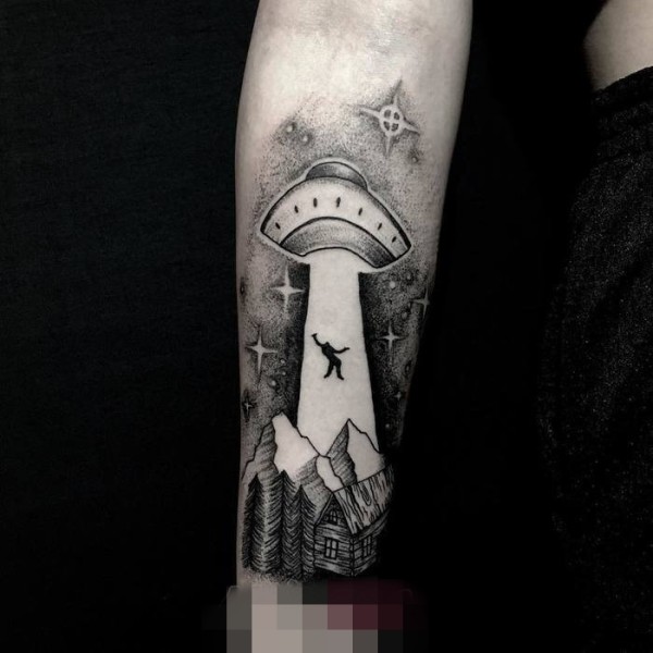 个性几何元素简约线条飞碟纹身图案
