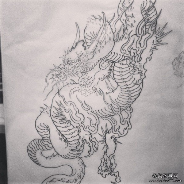 日式传统龙线条纹身图案手稿