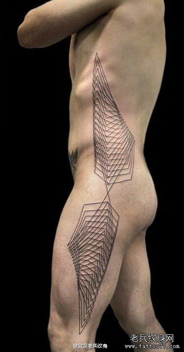 女生后腰纹身黑白灰风格抽象线条纹身图案