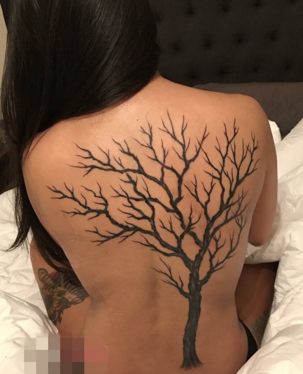 女生背部黑色植物素材抽象线条生命树纹身图片