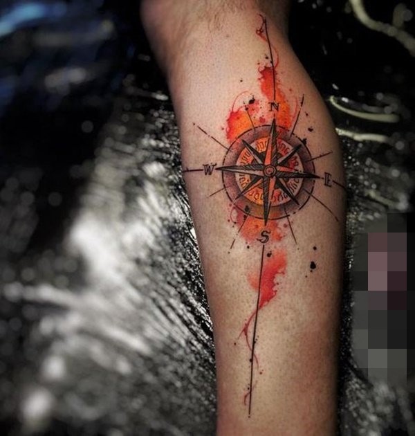 帅气的彩色花腿纹身水墨画纹身图案
