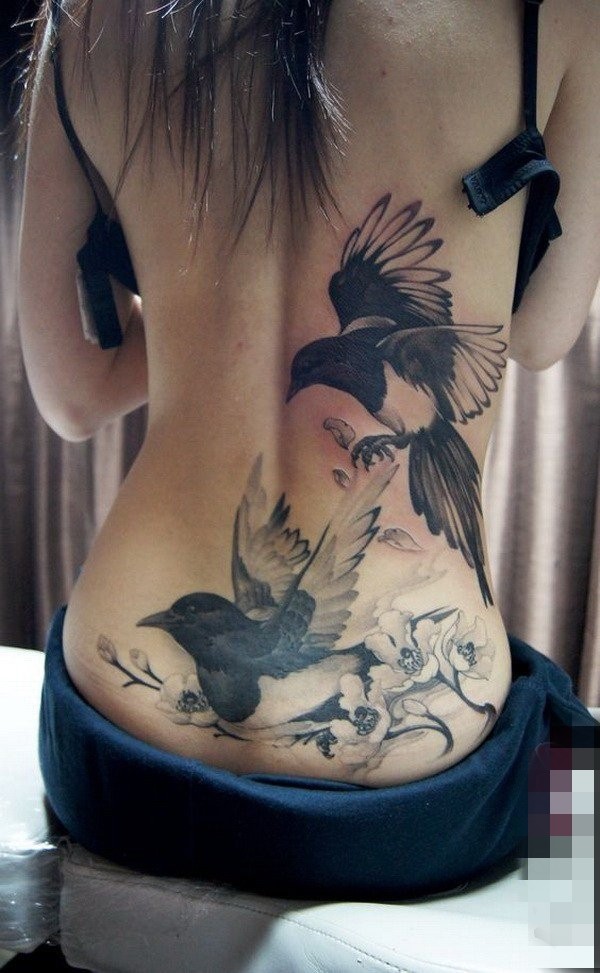 分享一款腰部时尚性感的蝶恋花纹身图案_腰部纹身图案大全_纹身图吧