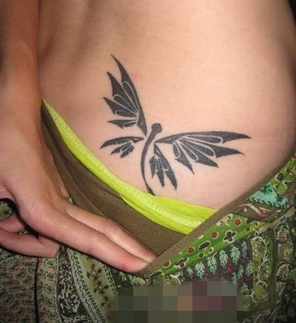 分享一款腰部时尚性感的蝶恋花纹身图案_腰部纹身图案大全_纹身图吧