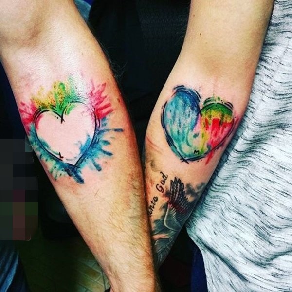 胳膊原创水彩心上钥匙纹身图案