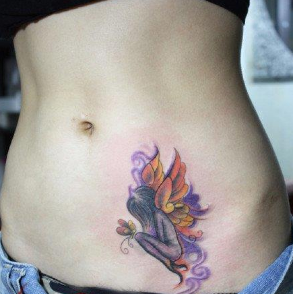 美女腹部精致的小精灵纹身图案