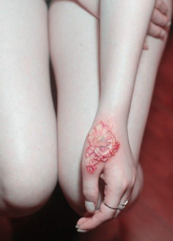 手部个性盛开莲花纹身图片_植物纹身图案大全_纹身图吧