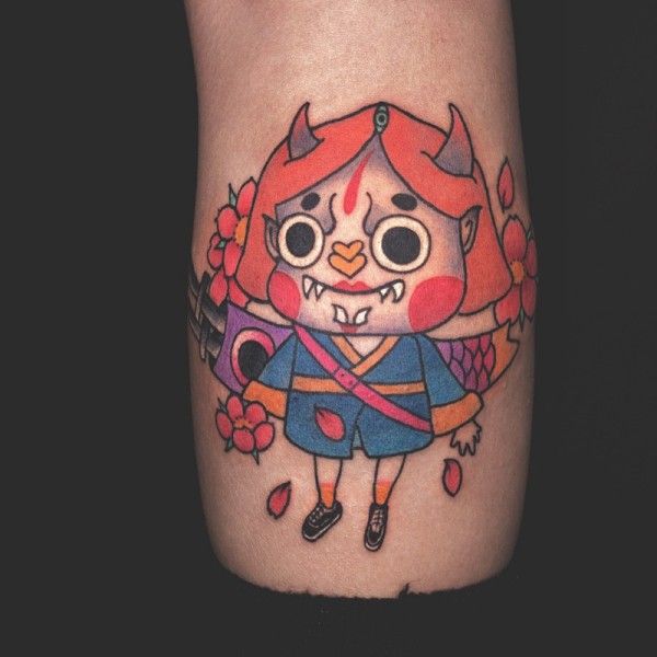 手臂Q版卡通般若彩绘纹身图案