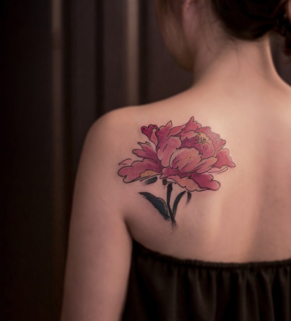 后背傲世而独立的牡丹花彩绘纹身图案