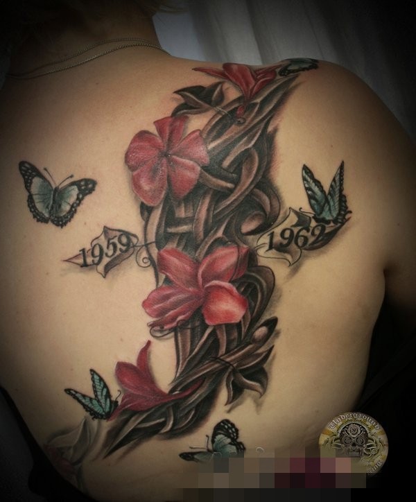 后肩唯美花藤英文图案图片_植物纹身图案大全_纹身图吧