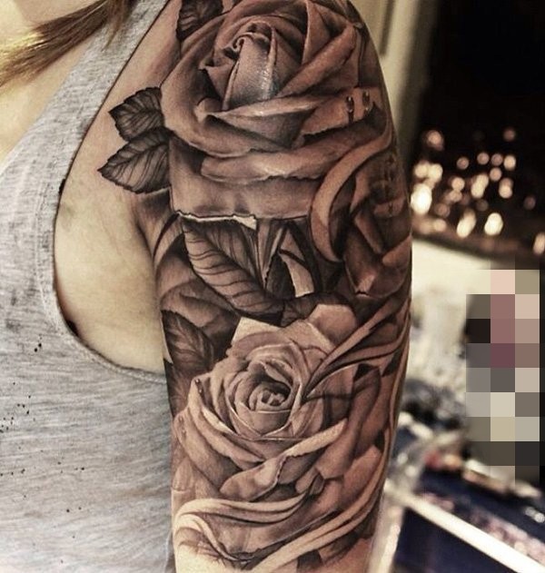 欧美玫瑰纹身 男生手臂上花朵纹身图片