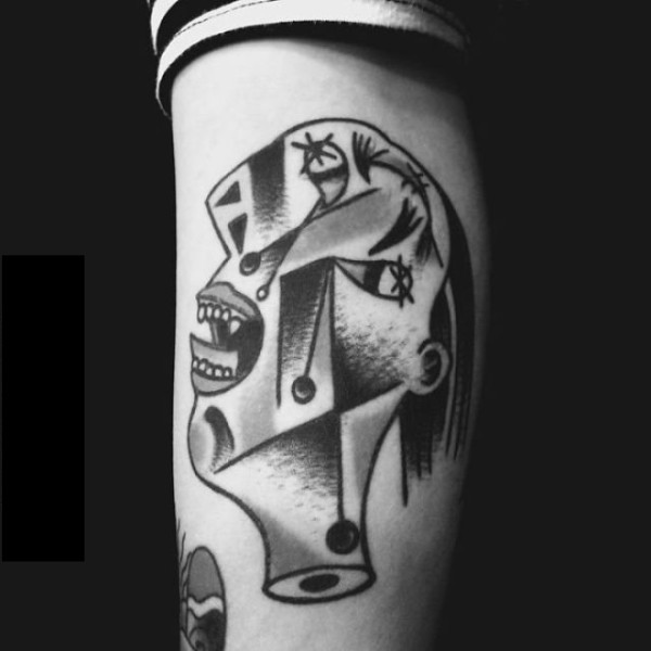 个性十足的几何元素抽象线条人物肖像纹身图案