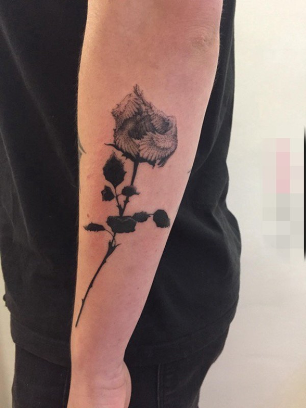欧美玫瑰纹身 男生手臂上花朵纹身图片