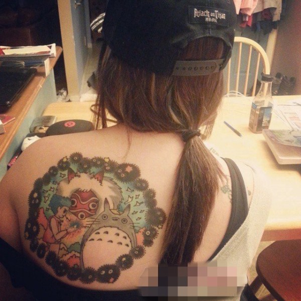 女生肩部彩绘技巧抽象线条龙猫动漫人物纹身图片