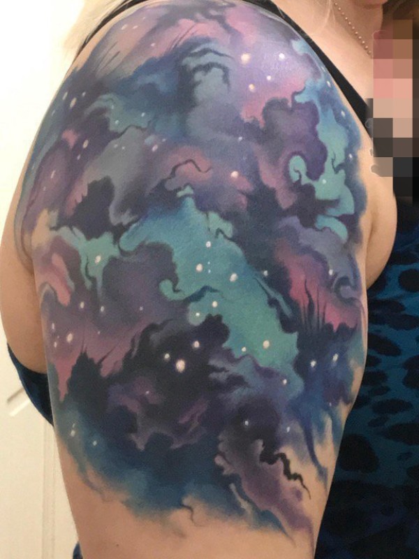 男生手臂上彩绘技巧抽象线条星空纹身图片