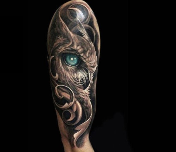 多款个性的小动物抽象线条猫头鹰纹身图案