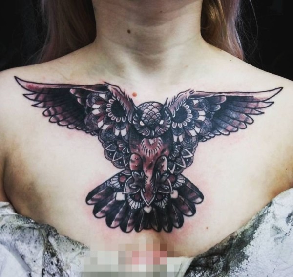 多款个性的小动物抽象线条猫头鹰纹身图案