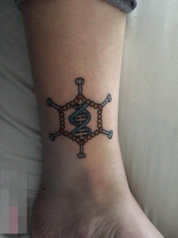 男生小腿上彩绘几何元素抽象线条结构病毒纹身图片