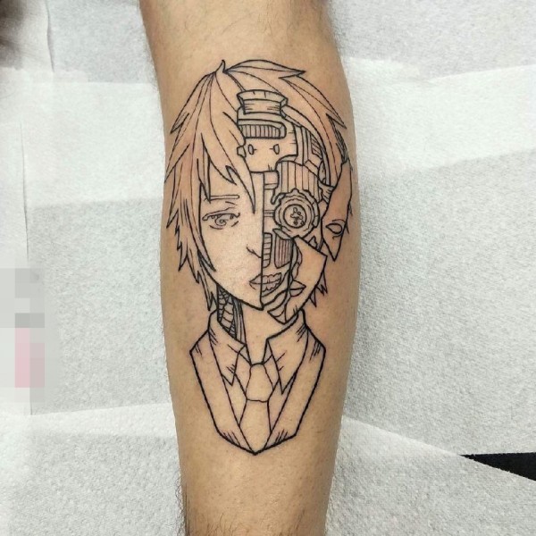 女生手臂上黑色线条素写动漫创意人像纹身图片