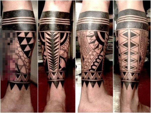 霸气十足的男生手臂上黑色线条几何元素创意图腾花臂纹身图案