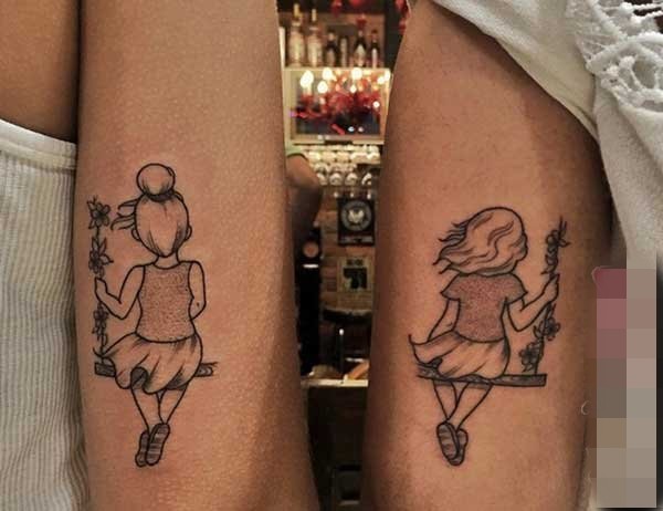 漂亮的几何元素简单个性线条姐妹纹身图案