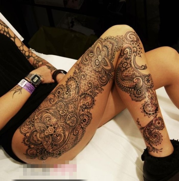 多款个性蕾丝花边植物素材简单线条花朵纹身图案