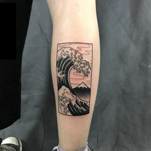 女生手臂上黑色素描海浪花文艺小清新纹身图片