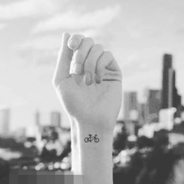 一组关于自行车黑色线条简约纹身图案