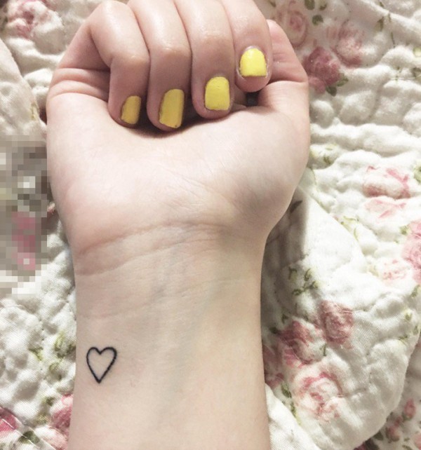 女生手腕上黑色几何元素简单线条爱心纹身图片