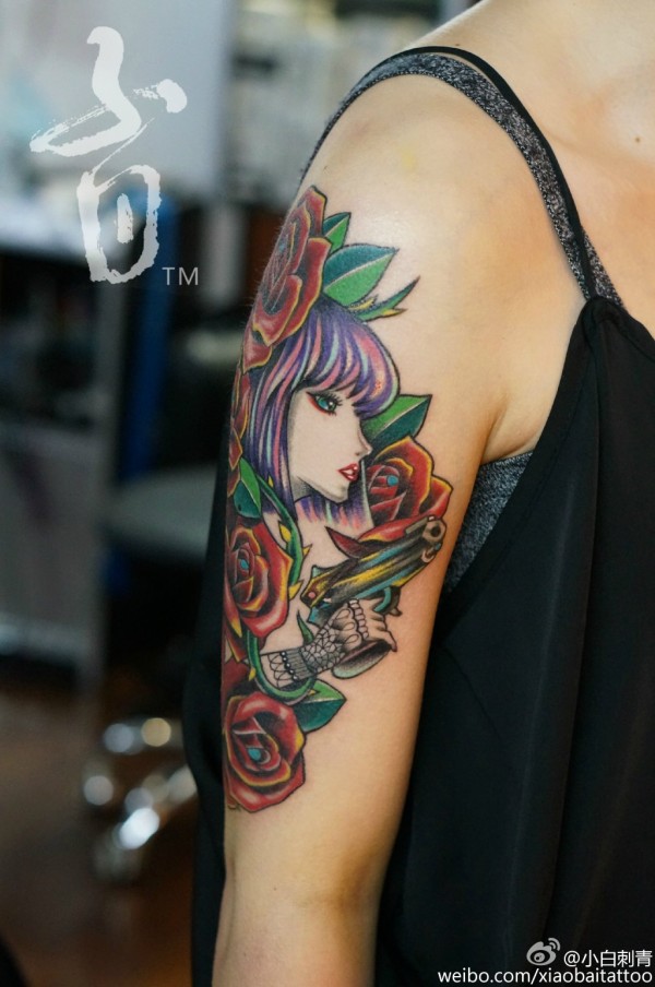 school花臂纹身--一组漂亮的school风格的花臂纹身图案作品