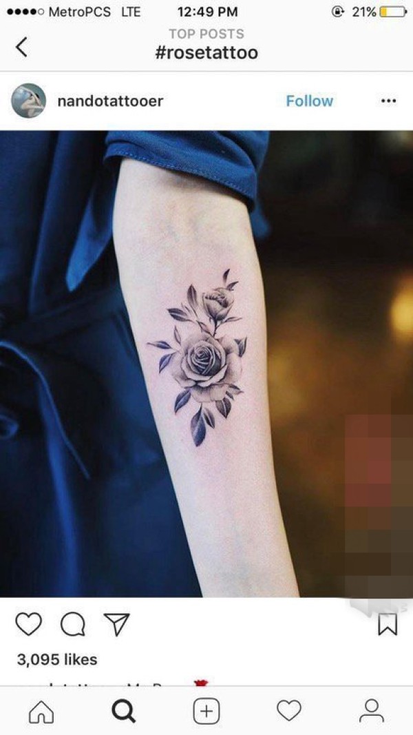 女生手臂上黑色素描文艺小清新唯美花朵纹身图案