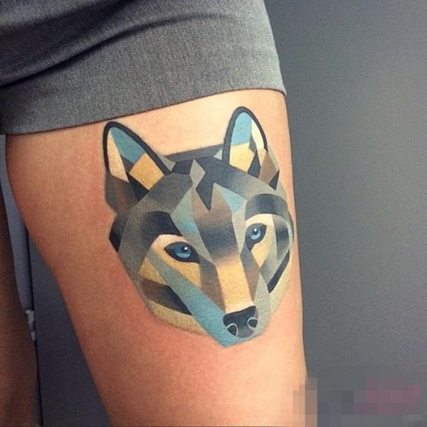 男生喜爱的凶残霸气的点刺技巧几何线条狼头纹身图案